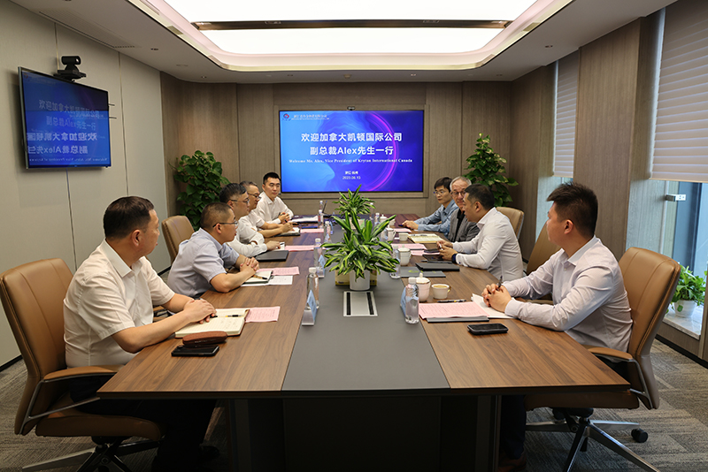 6月15日,冶金物資黨委書記、董事長鄭浩接待加拿大凱頓國際公司副總裁Alex Holowko一行,雙方就合作具體事宜開展深入交流。冶金物資副總經理、杭鋼智安董事長周林軍,杭鋼智安總經理錢昭葉;加拿大凱頓國際中國區總經理馬寧及雙方相關負責人參加會議。