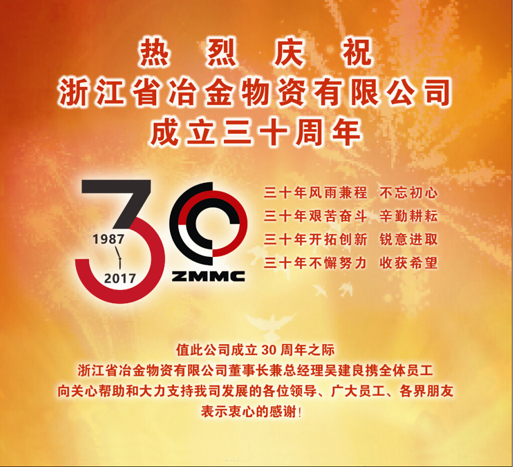 浙江省冶金物資有限公司三十周年發(fā)布日期:2017-03-10