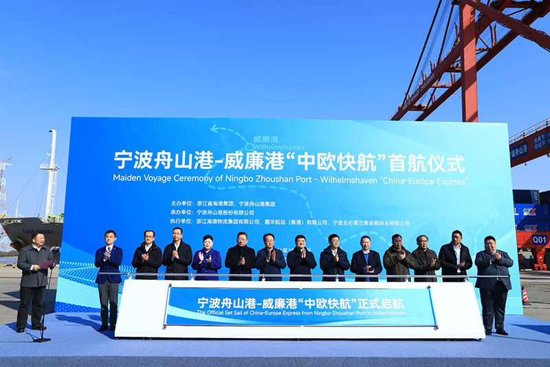 12月30日,寧波舟山港至德國威廉港的點對點海運快線——中歐快航(CEX)正式啟航。冶金物資作為集裝箱提供方,現場參加首航儀式。隨著汽笛一聲轟鳴,裝載國產鋰電池的集裝箱僅需26天即可抵達德國威廉港。
