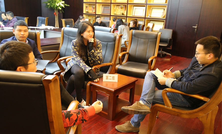 課后,大家分組討論公司發(fā)展中存在的問題,并由組長代表小組上臺(tái)發(fā)言。董事長、總經(jīng)理鄭浩,總經(jīng)理助理陳建先后對(duì)各組提出的8個(gè)問題一一進(jìn)行回應(yīng)。